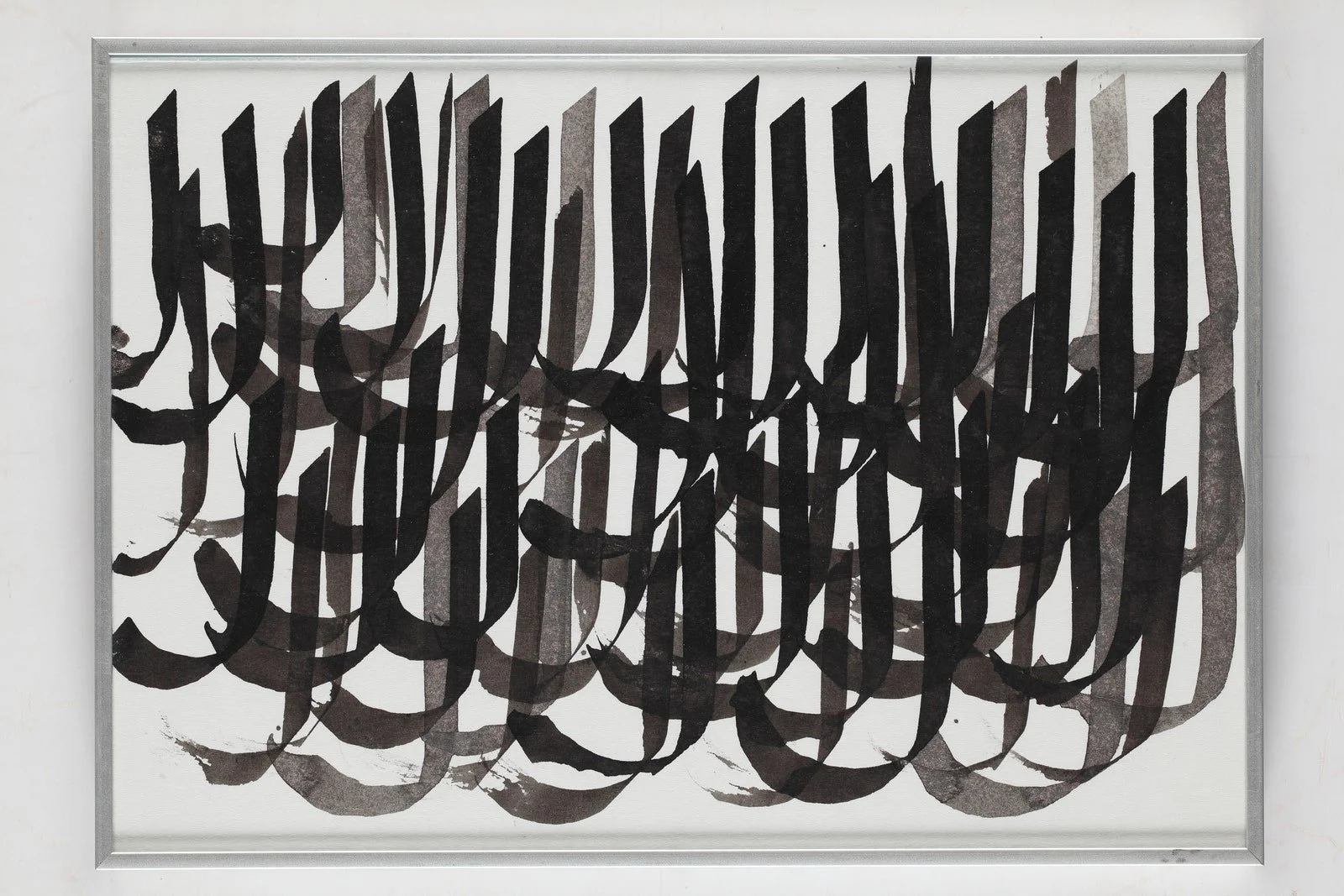 While cities play a part in shaping who we are, so does our intimate relationship with the vernacular. Language offers a sense of belonging, but it can also be a burden. What happens when words come undone or become unfamiliar? Letters become mere patterns, even gibberish. Saubiya Chasmawala culls characters from Arabic script, and through measured reiteration, layers them on paper until they become opaque, obscure and lose their essence. There is an undeniable chaos in the brushstrokes—from fine wisps to thick and full streaks—that dance in abandonment. “By stripping down the letters to their bare form, Chasmawala removes the weight of meaning from a language that she can recite, but is unable to engage with on her own terms,” explains TARQ’s director, Hena Kapadia. “Saubiya's work fits beautifully into Shifting Selves in the sense of how we are continually negotiating with society by questioning, re-authoring and redefining norms.”
